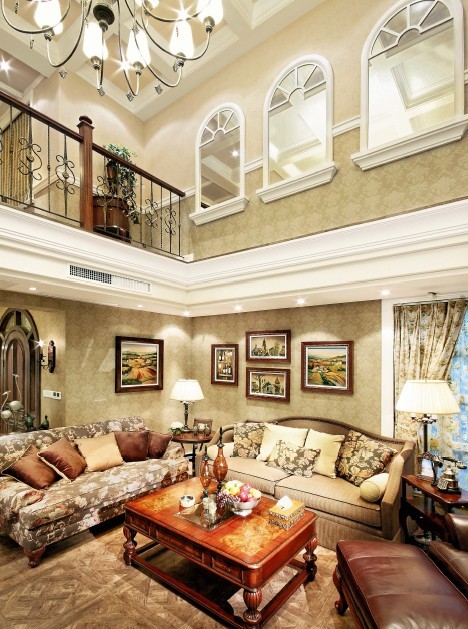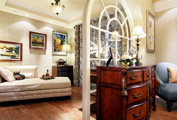 本案摒棄了繁瑣和奢華的裝飾,以舒適機能為導(dǎo)向,強調(diào)自然與休閑生活氛圍的營造。美式霧具、仿古地板、寬大的布藝沙發(fā)、碎花窗簾色彩搭配典雅溫和。在配飾上又加入了古典元素以及動物造型,營造出一種令人向往的寧靜氛圍。