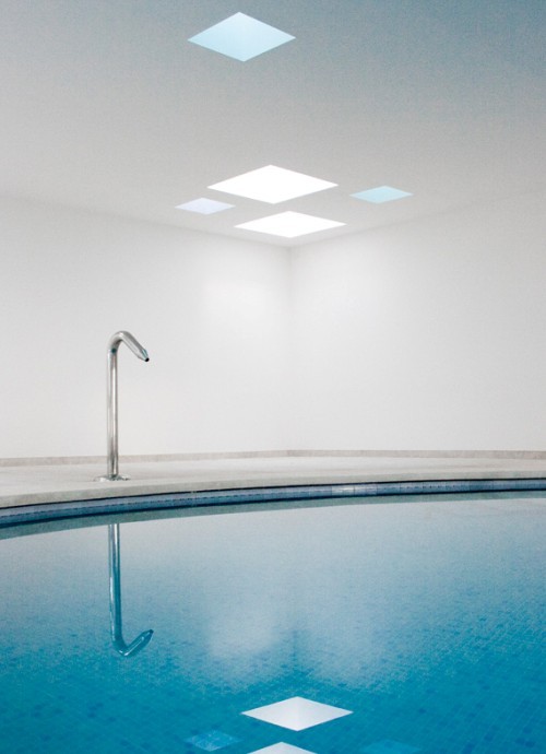 泳池的設(shè)計(jì)挑戰(zhàn)不僅僅是要讓新的空間被有效利用,同時(shí)它們應(yīng)起到突出酒店陽光明媚氣氛的作用?,F(xiàn)已完成的改造中,方形開口之間相互作用,自然光通過從綠色屋頂、墻壁等不同方向射入、就像在空間中舞蹈。