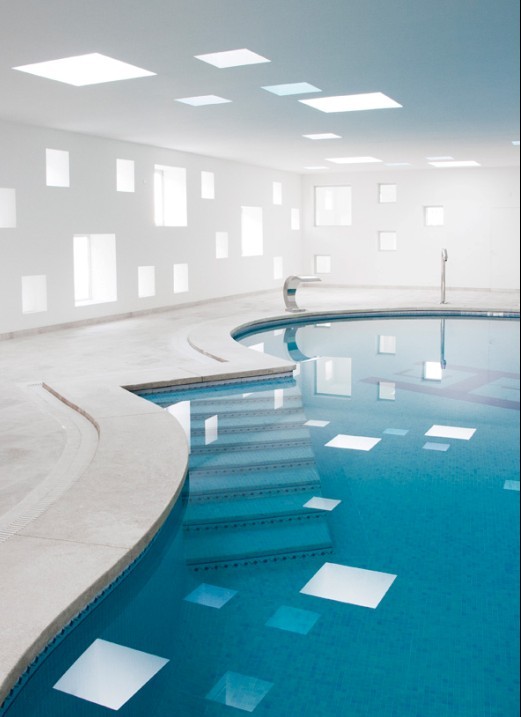 在水療館,空間設(shè)計(jì)是精雕細(xì)琢的結(jié)果,屋頂?shù)拈_口讓色彩斑斕的光線傾瀉而入,使得整棟建筑成為水療的一部分內(nèi)容,因?yàn)樗梢酝ㄟ^自然給人帶來幸福感。舒適的自然環(huán)境引入空間使客人完全沉浸在水療的美妙之中。