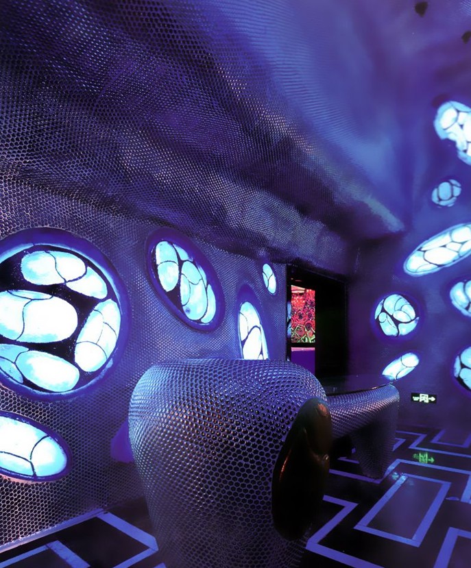 "Baby Face "作為一個國際音樂會所,其室內(nèi)設計以太空元素為主題,充滿了時尚與誘惑力。設計師通過對燈光的把握和材料的選擇,使得整個音樂會所到處都散發(fā)出時尚而迷離的視覺魅力。一走進會所,便仿佛進入一個神秘的太空世界,設計師在材料選擇上大量運用了玻璃鋼和樹脂加以華麗的水晶片,使得空間的時尚和奢華感大增。大堂中央的VIP卡座,夜場設計公司的設計師吸收了太空艙的靈感,配合燈光制造出一場繁復美麗的璀璨效果,通過細節(jié)元素的描繪,使得客人仿佛進入太空遨游。