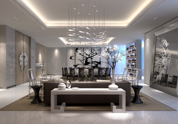 您現(xiàn)在所在的位置:首頁(yè)>設(shè)計(jì)風(fēng)向標(biāo)>正文 整個(gè)項(xiàng)目突破以往會(huì)所空間只注重奢華感視覺(jué)空間的營(yíng)造的模式,在設(shè)計(jì)上追求給顧客更多的感官享受。整個(gè)空間的設(shè)計(jì)理念以祥云為主,在墻面、天花、甚至燈光的裝飾上都有所呼應(yīng)??臻g色調(diào)以淡黃、白、黑為主,淡雅清新中為顧客營(yíng)造一個(gè)輕松舒適的就餐環(huán)境。
