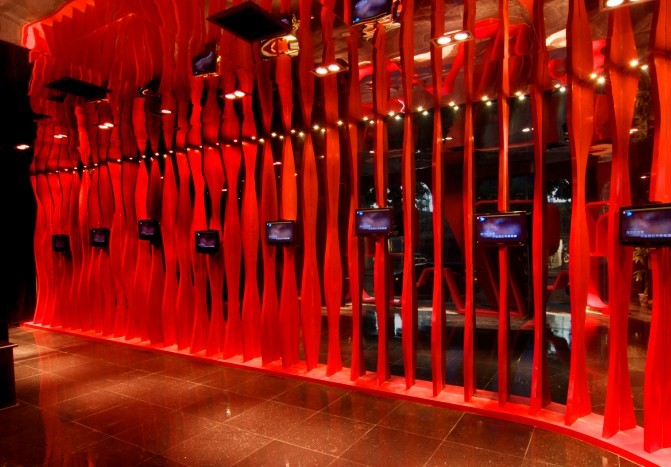 您現(xiàn)在所在的位置:首頁>設(shè)計(jì)風(fēng)向標(biāo)>正文 聲音的聲波、聲紋在項(xiàng)目中被落化成沙發(fā)、天花、梁柱、每一個(gè)包廂、每一個(gè)轉(zhuǎn)角。聲音的元素被聚合成前衛(wèi)大膽的形變空間,項(xiàng)目充分考慮時(shí)尚品味,讓武漢的特色與年輕活力在此得到升華,用藝術(shù)與情趣將傳統(tǒng)的歌唱空間幻化出靈動(dòng)的氣氛,全力開創(chuàng)新的歡樂境界。