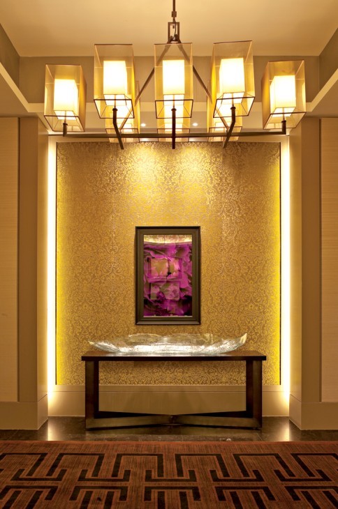 龍軒以中國傳統(tǒng)華麗藝術(shù)圖案為構(gòu)思理念,采用大量名貴絲綢以極富層次的設(shè)計,將華麗的絲綢刺繡屏風,典雅的水晶吊燈、精致的青銅浮雕工藝和瑰麗的絲綢簾幕,以及高貴的天鵝絨木制家具一一展現(xiàn)在賓客眼前。