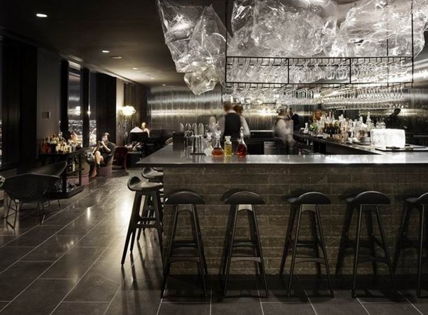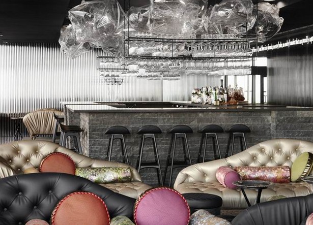 Sea餐廳位于珊瑚礁的邊緣地帶,為了最大程度的優(yōu)化食客的視覺景觀,丙烯酸樹脂窗口設置得比 餐桌還要低矮,給人一種置身于珊瑚礁里的假象。每把座椅上都擺放著一個手工刺繡腰枕,這些腰枕是手工制作的,有腰鼓和圓鼓等造型。3米長的玻璃藝術(shù)吊燈充滿了整個吧臺的,同樣是為了獲得更大的視野.而天花板 則是由帶有彈性的Barrisol鏡面構(gòu)成。