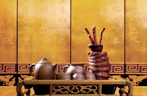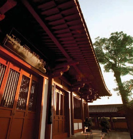 菩提賓舍建筑與華興寺的整體風格保持致,從大堂開始,滿眼的袈裟黃就為這間以大乘佛教為基調(diào)的私人會所鋪墊了所有的色調(diào),而私人會所的英文名也沿用了梵文“Mahayana”(大乘佛教)之意。有道是“世間情薄袈裟黃,深山緲裊梵音響”,袈裟的黃色,讓空間暖暖的,沉靜中蘊含能量??臻g里充分融人了佛文化的元素,中式傳統(tǒng)建筑的屏風家具裝飾都令私人會所風格別致。