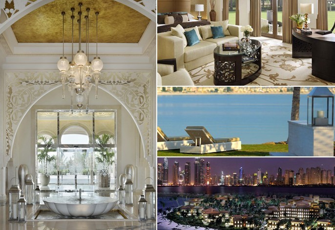 樓頂層的Grand Palm套房(面積270平方米),可盡覽渡假村泳池和私人碼頭風光。於面棕櫚島方向,寬450米的私人海灘則規(guī)劃了64間客房、24間套房及4棟私人沙灘別墅(包括3棟面積325米的二房別墅以及一棟面積425平方米 的三房別墅,配置私人恒溫泳池及「阿拉伯」式的私人宴會露臺供家族聚會使用)。同時因基地位於海上,高度隱私 對於低調中東住客的重要性,而貼心地提供專用碼頭供私人游艇停泊。飯店基地中央位置,面積達850平方米的泳池, 於泳池兩側擺置偌大的長沙發(fā)供日光浴。其中較為特殊的是位於泳池旁的池畔套房,亦提供私人專用的室內外起居空間、娛樂設施及酒吧與沐浴空間,是專為家族聚會使用的獨特規(guī)劃。