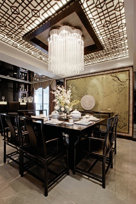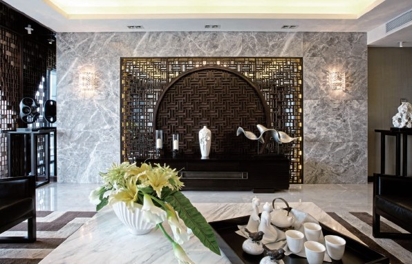 水云紗大理石提升了整個(gè)會所的檔次,大理石的墻面也毫不吝嗇,玉檀香拼板的地板更增添了整個(gè)空間的神韻。不銹鋼的鏡面、清鏡、玻璃材質(zhì)、專業(yè)的手繪墻紙拼貼的靈活運(yùn)用,讓房間多了幾許現(xiàn)代舒適的氣息。在這中式樣板房里,到處都是中式風(fēng)格的細(xì)節(jié),雅致中透出一股親切,其中的小物件不時(shí)引人細(xì)細(xì)地觀摩和玩味。