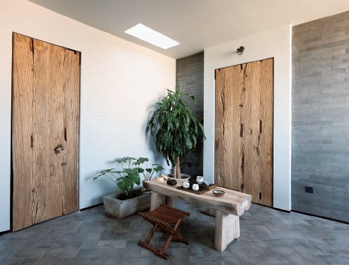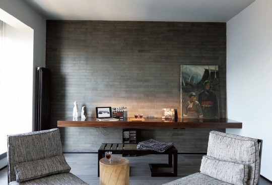 設(shè)計(jì)最先從室內(nèi)建筑著手,以中國(guó)古建筑中常用的灰磚作為主要元素貫穿整個(gè)空間,看似簡(jiǎn)單的處理手法使室內(nèi)有了建筑的味道,也就是我們常說(shuō)的用建筑的手法來(lái)處理室內(nèi)關(guān)系。