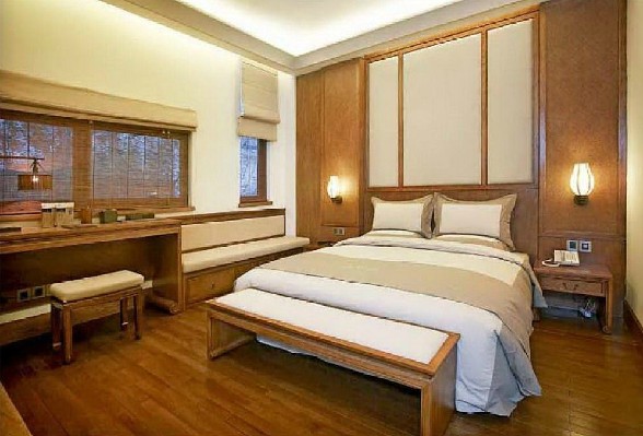 樸素的酒店客房設(shè)計(jì),簡(jiǎn)單但也很精巧,透過細(xì)密的竹簾,目光可以穿越到窗后充滿禪意的小院子里。禪堂素雅,竹制的頂棚、竹制的天燈都照應(yīng)著向禪的心靈回歸自然無我。茶室里的家具簡(jiǎn)約但也滲透出禪境,讓客人更好地在參茶過程中調(diào)節(jié)心境。這所精致的度假地正以“禪”為主題,提供給客人“禪”的教誨、“禪”的感悟、“禪”的意和境。