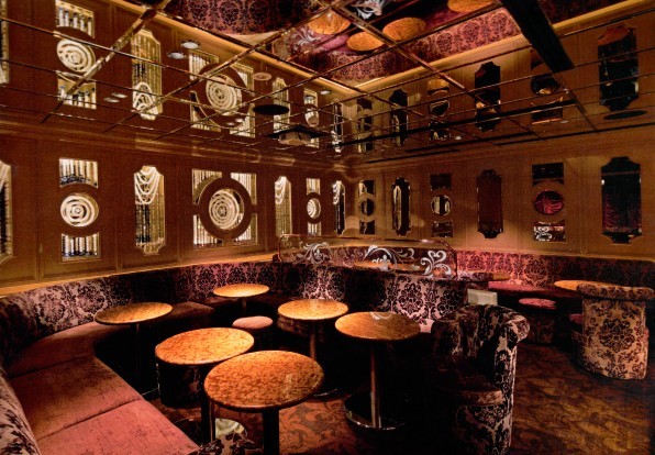 墻壁和地板上有序的大理石圖案以及地毯和沙發(fā)的面料圖案很有裝飾感而且炫目,天花板和墻壁則比較簡單 ,采用了鏡子的圖案。